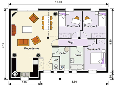 MAISON DONA a créé cette construction avec combles aménageables pour privilégier l'espace et la lumière dans toutes les pièces de la maison. D'allure moderne avec son porche et ses ouvertures rectangulaires, elle est faite pour votre famille. Elle abrite 3 chambres en RDC dont une suite parentale.